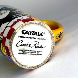 Brighten your mornings with this whimsical tall cat mug from the iconic "Catzilla" collection designed by Candace Reiter! Featuring a playful hand-painted cat motif surrounded by cheerful flowers, this collectible mug brings a burst of color and personality to your kitchen. The vivid yellow handle and decorative rim add extra charm, while the generous size is perfect for coffee, tea, or cocoa lovers.
