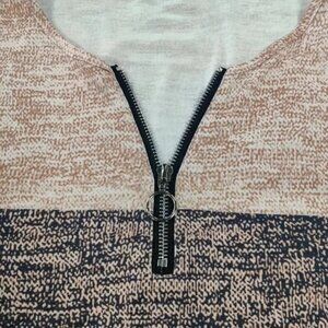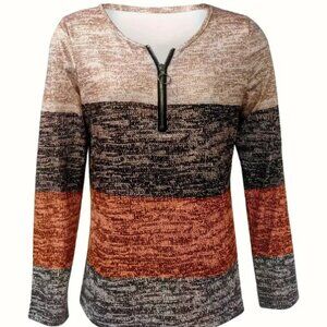 Vibrant Color Block Quarter Zip Long Sleeve T-Shirt - Coffee - S