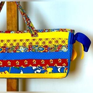 Fun multicolored and multi-patterned tote bag perfect for the beach, vacations, and anytime you want to make a statement.