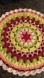 Brighten your living space with this vibrant crochet mandala wall art. Featuring a stunning blend of red, pink, green, and cream, this piece brings a lively touch to any room.
