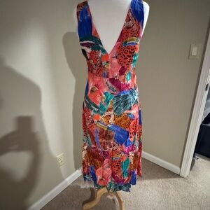 Embrace bold style with this vibrant multicolor sleeveless dress. Perfect for making a statement, this dress features a lively mix of colors that add a playful touch to your wardrobe.