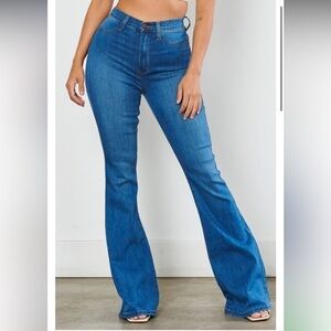 Vibrant M.I.U Women Size 31 15 Blue High Rise Flare Bell Bottom Jean 33" inseam D