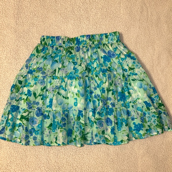 Elevate your style with this vibrant floral mini skirt, featuring a stunning blend of blue and green hues. Perfect for any occasion, this skirt adds a fresh and lively touch to your wardrobe.