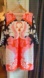 Bold floral V-neck dress with striking patterns. Features a mix of red, pink, black, and white colors. Perfect for making a statement.