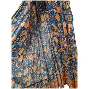 Step out in style with this stunning floral maxi dress. Featuring a deep V-neck and a beautiful blend of blue and orange, it's perfect for any occasion. Size small