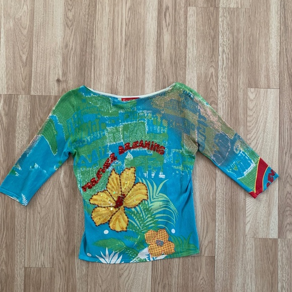 Vibrant Tropical Top Colorful Embellished Floral Design