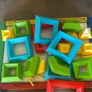 Spark your child's imagination with this vibrant geometric stacking blocks set. Featuring bold colors like red, blue, green, and yellow, this set is perfect for enhancing motor skills and color recognition. 28 piece set with book and examples.