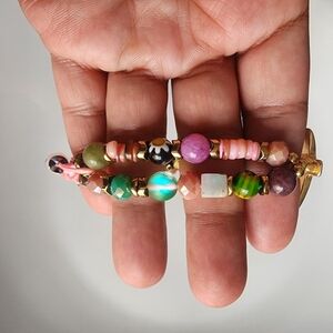 Enhance your style with this vibrant bracelet featuring a gold cross charm and a mix of colorful beads. A perfect accessory for any occasion.