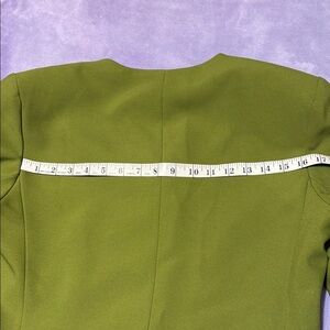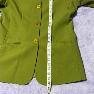 This striking green blazer boasts a tailored silhouette with notched lapels and a fitted waist, making it a standout piece for professional settings. Crafted from a structured fabric, it offers a clean, minimalist design that exudes sophistication and style.pre-owned #p596