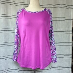 This colorway is so beautiful that it's impossible to photograph! The color is more on the purple side than how it's showing up in the photo. Did I mention how soft it is yet? Because really that should have been the first thing out of my mouth! This shirt is made of double brush poly (DBP!), you know that stuff Lula made but without the frightfully ugly patterns. So soft in fact, it feels like you're lounging on a cloud.