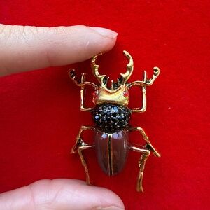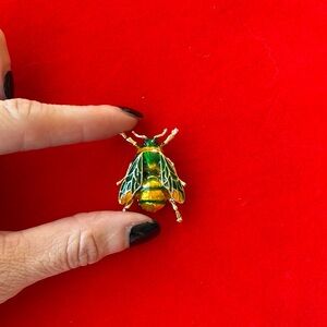 Collection of unique insect brooches. Features green, red, gold, and silver tones. Perfect for adding flair to any outfit.