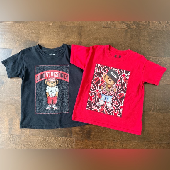 These vibrant kids' tees feature playful designs in black and red. Perfect for adding fun to any day.