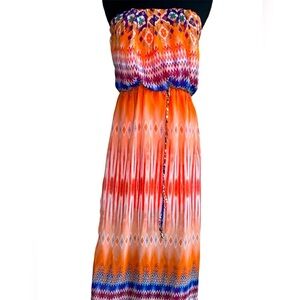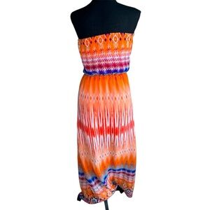 Vibrant Lightweight Strapless Bold Boho Print Maxi Dress Size Small