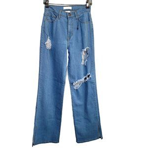 Vibrant MIU Jrs 5 W26 L32 Thrashed Ripped Wide Leg Hi Waisted Jeans Light Demin