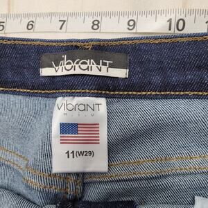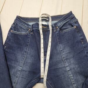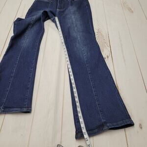 Stylish Vibrant M.I.U Flare jeans! Dark wash with seamed detailing and a thicker yet stretchy fabric. Barely worn and in excellent condition. SIze 11/29, measurements in photos.