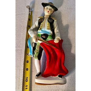 Vibrant Mid Century Bullfighter Figurine Matador Statue With Sword & Red Cape