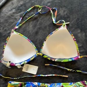 Eye-catching bikini set with a mix of vibrant colors. Perfect for a bold beach look.