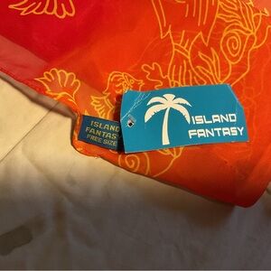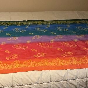 The product is a 100% micro polyester scarf in fish print, featuring a multicolor design. This free size rectangle scarf measures 73" in length and 43" in width, making it suitable for all seasons. The scarf is lightweight and perfect for adding a touch of beach, nautical, or tropical style to any outfit. Made in India, this accessory from Island Fantasy is a must-have for women looking to elevate their look with a unique and vibrant piece.
