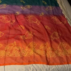 Elevate your style with this vibrant scarf featuring a playful fish pattern. Perfect for adding a pop of color to any outfit.