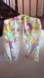 Bright and stylish scarf with a mix of green, pink, and yellow patterns. Perfect for adding a pop of color to any outfit.