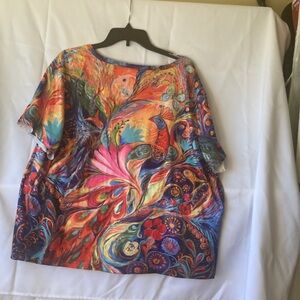 Vibrant Multicolor Women's Jersey Topcolorful peacock