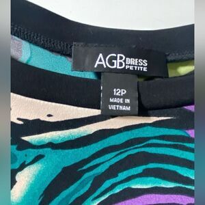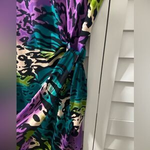 Stand out in this vibrant multicolor dress, perfect for any occasion. The bold design features shades of purple, green, and black, creating a stunning look.