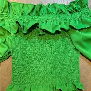Eye-catching off-shoulder blouse with ruffle accents. Perfect for adding flair to any outfit. NWOT..