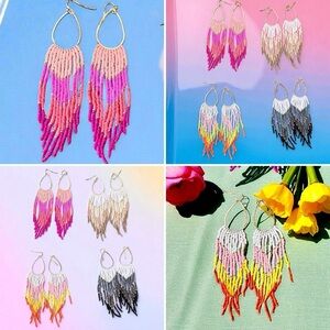 Vibrant Ombré Colored Hand Beaded Earrings. Elevate your style with these stunning pink, yellow, brown. Or black ombré beaded earrings. Perfect for adding a touch of elegance to any outfit. Size see picture with US quarter.