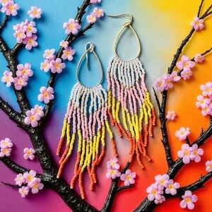 Vibrant Ombré Colored Hand Beaded Earrings