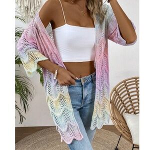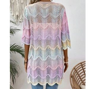 Vibrant Ombre Lightweight 1/2 Sleeve Open Front Cardigan