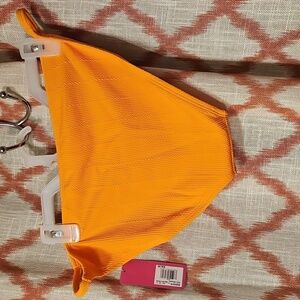 Bright orange bikini bottom with textured design. Perfect for a sunny day at the beach.