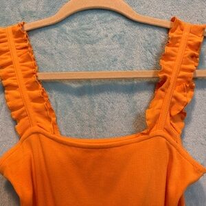 Vibrant Orange Ruffled Tank Top