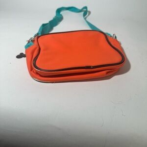 This lively bag combines a striking orange and blue color palette with a delightful Mickey Mouse design, making it a standout accessory. Crafted from durable fabric, its compact rectangular shape is perfect for carrying essentials on the go.