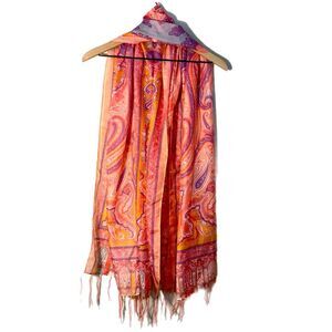 Vibrant Paisley Scarf in Pink and Orange Fringe.