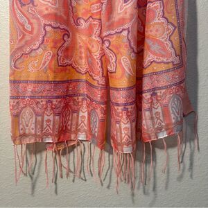 Vibrant Paisley Scarf in Pink and Orange Fringe.