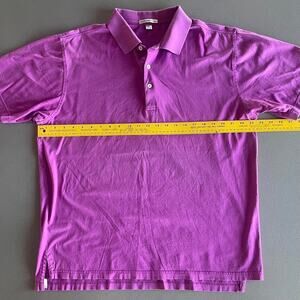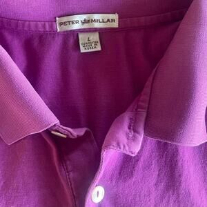 This rare vintage Peter Millar polo in bold purple is made from 100% cotton and crafted in Korea. Features a classic fit with a crisp collar and two-button placket. Timeless and comfortable—perfect for summer golf or smart casual wear.