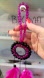 Beautiful dreamcatcher with vibrant pink feathers and black bead accents. Perfect for adding a pop of color to any room.