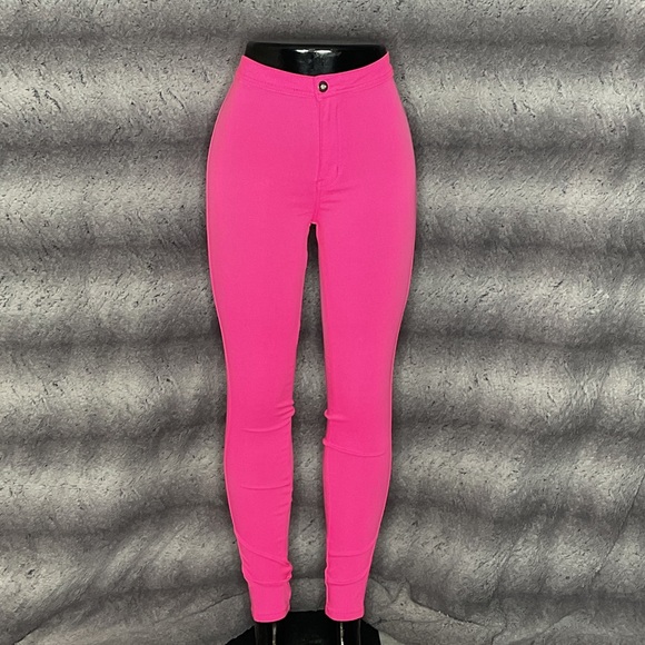 Bright pink high-waisted Jeggins. Perfect for casual wear or workouts.
