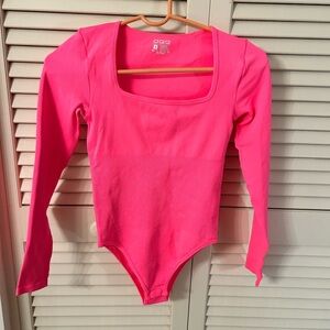 Vibrant Pink Long Sleeve Bodysuit square neck