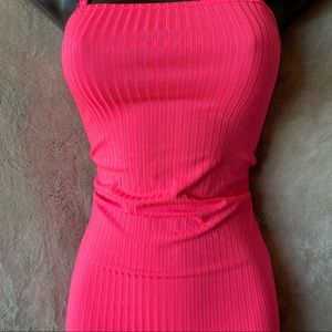 Vibrant Pink Ribbed Mini Dress