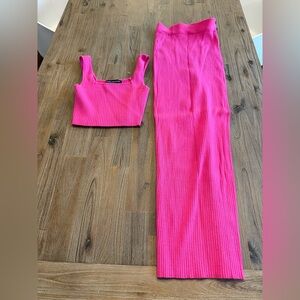 Vibrant Pink Ribbed Two-Piece Set