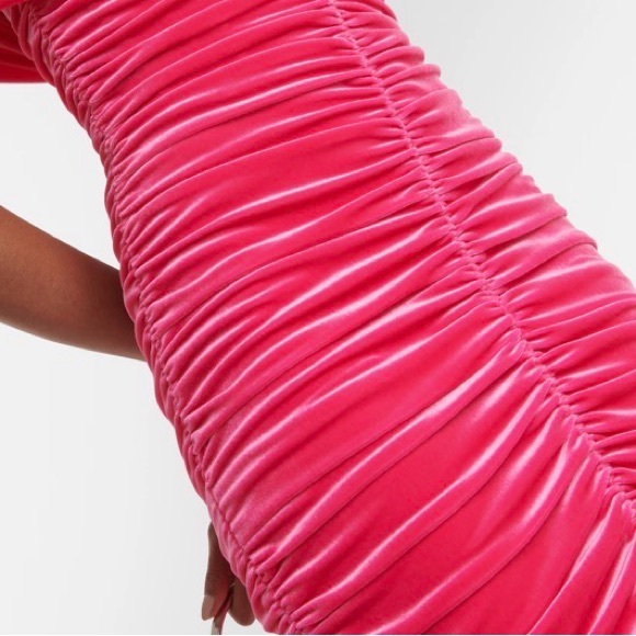 Eye-catching pink dress with elegant ruching. Perfect for any occasion.