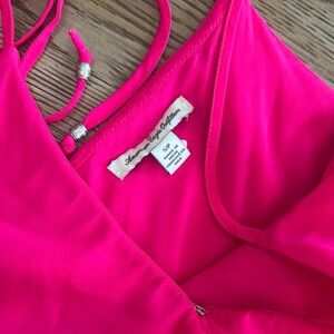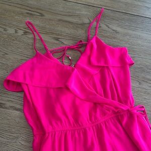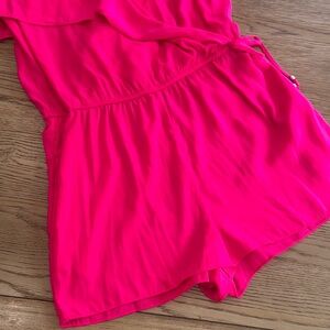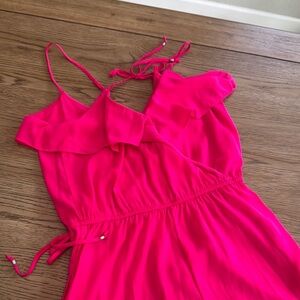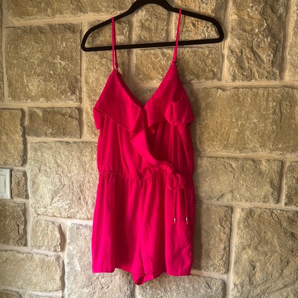 Stylish pink romper with ruffle details. Perfect for a chic look.