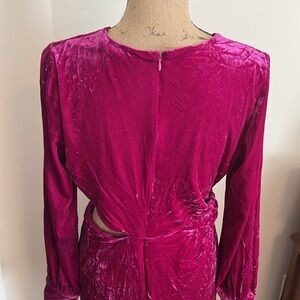 Vibrant Pink Velvet Dress with Cutout Size 12