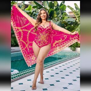 Make a splash with this vibrant pink one piece bathing suit set . Perfect for sunny days by the pool.