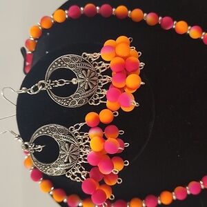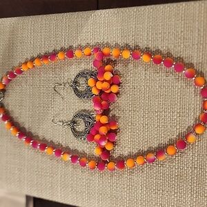 Vibrant Pink and Orange Beaded Necklace and Earring Set