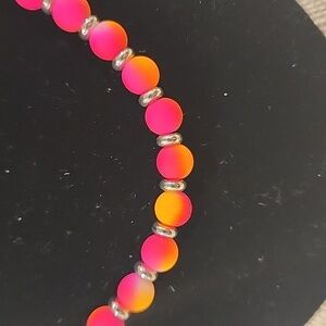 Add a pop of color to your outfit with this vibrant pink and orange beaded jewelry set. Perfect for any occasion.