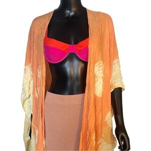 Make a splash with this vibrant pink and orange swim top. Perfect for a bold beach look.