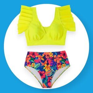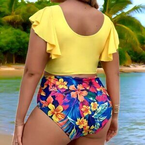 Get ready to shine and soak up the sun with this gorgeous plus size boho tankini set! ☀️🌴 Featuring a vibrant tropical floral print and a flattering high-waisted bottom, this swimsuit will have you feeling confident and radiant. The ruffled sleeves add a fun, flirty touch, while the supportive top provides comfort and style. Perfect for pool parties, beach days, and tropical getaways! 🌺🏖️ Lightweight, breathable, and made with moderate stretch fabric to keep you comfy and fabulous all day long. A must-have for your swimwear collection this season!🌞