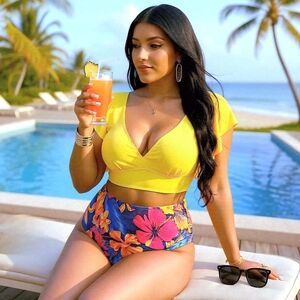 Get ready to shine and soak up the sun with this gorgeous plus size boho tankini set! ☀️🌴 Featuring a vibrant tropical floral print and a flattering high-waisted bottom, this swimsuit will have you feeling confident and radiant. The ruffled sleeves add a fun, flirty touch, while the supportive top provides comfort and style. Perfect for pool parties, beach days, and tropical getaways! 🌺🏖️ Lightweight, breathable, and made with moderate stretch fabric to keep you comfy and fabulous all day long. A must-have for your swimwear collection this season!🌞